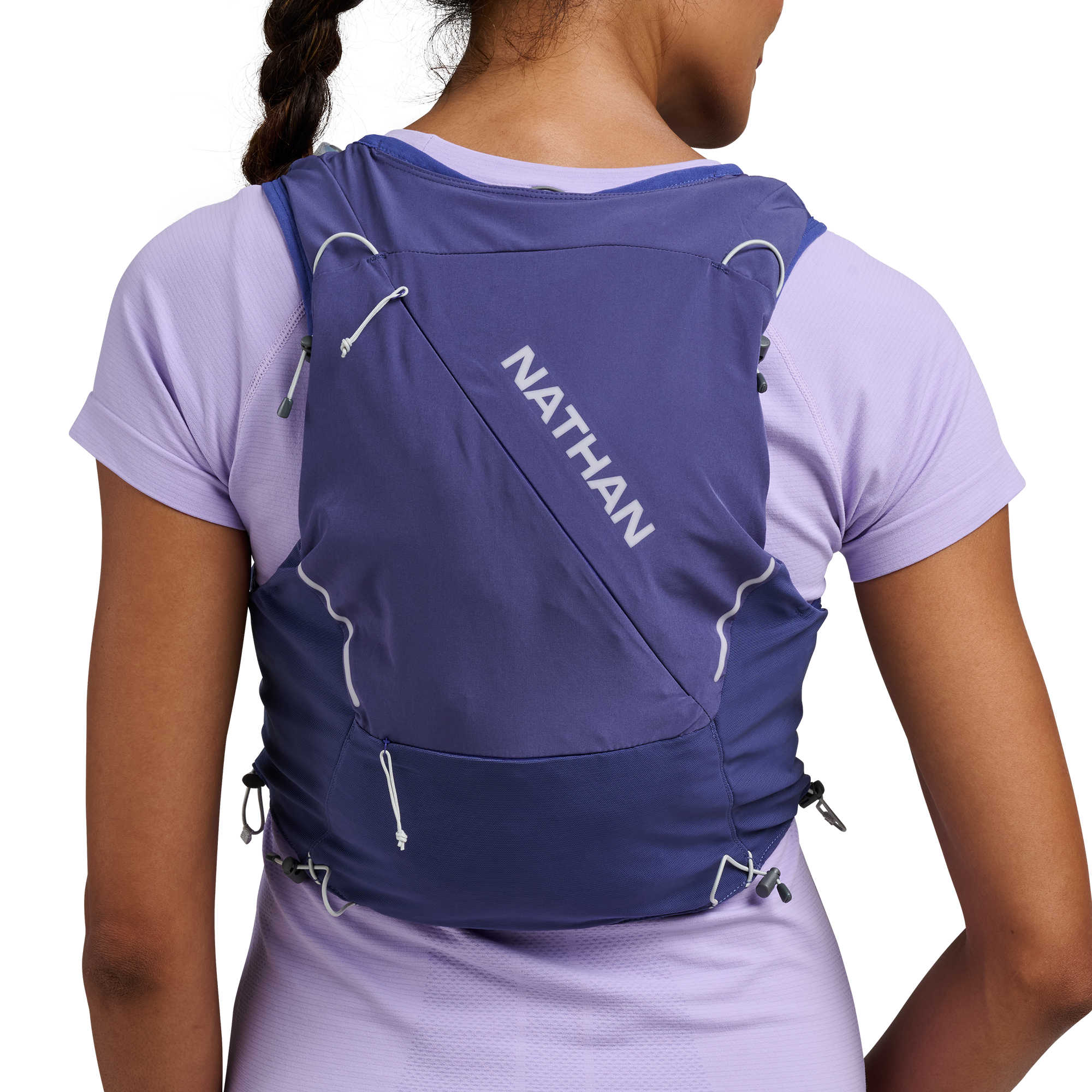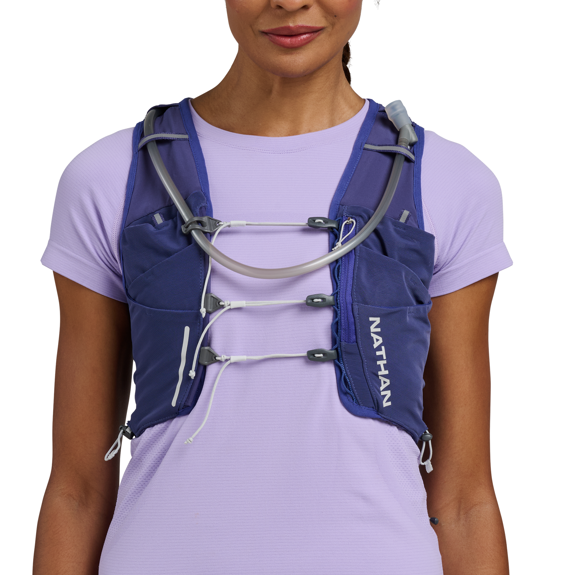 - A compression hydration vest designed specifically for a women's shape and designed to fit like a second skin